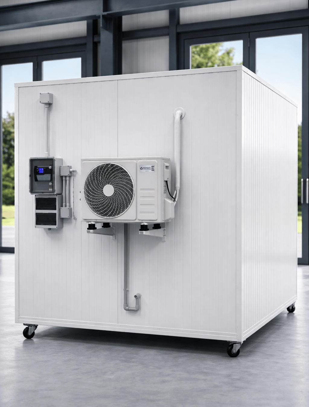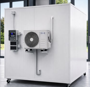 Es un sistema de frío inteligente, modular y móvil de alto rendimiento. En la práctica, entrega frío profesional sin depender de infraestructura fija, con menor consumo energético y control en tiempo real.